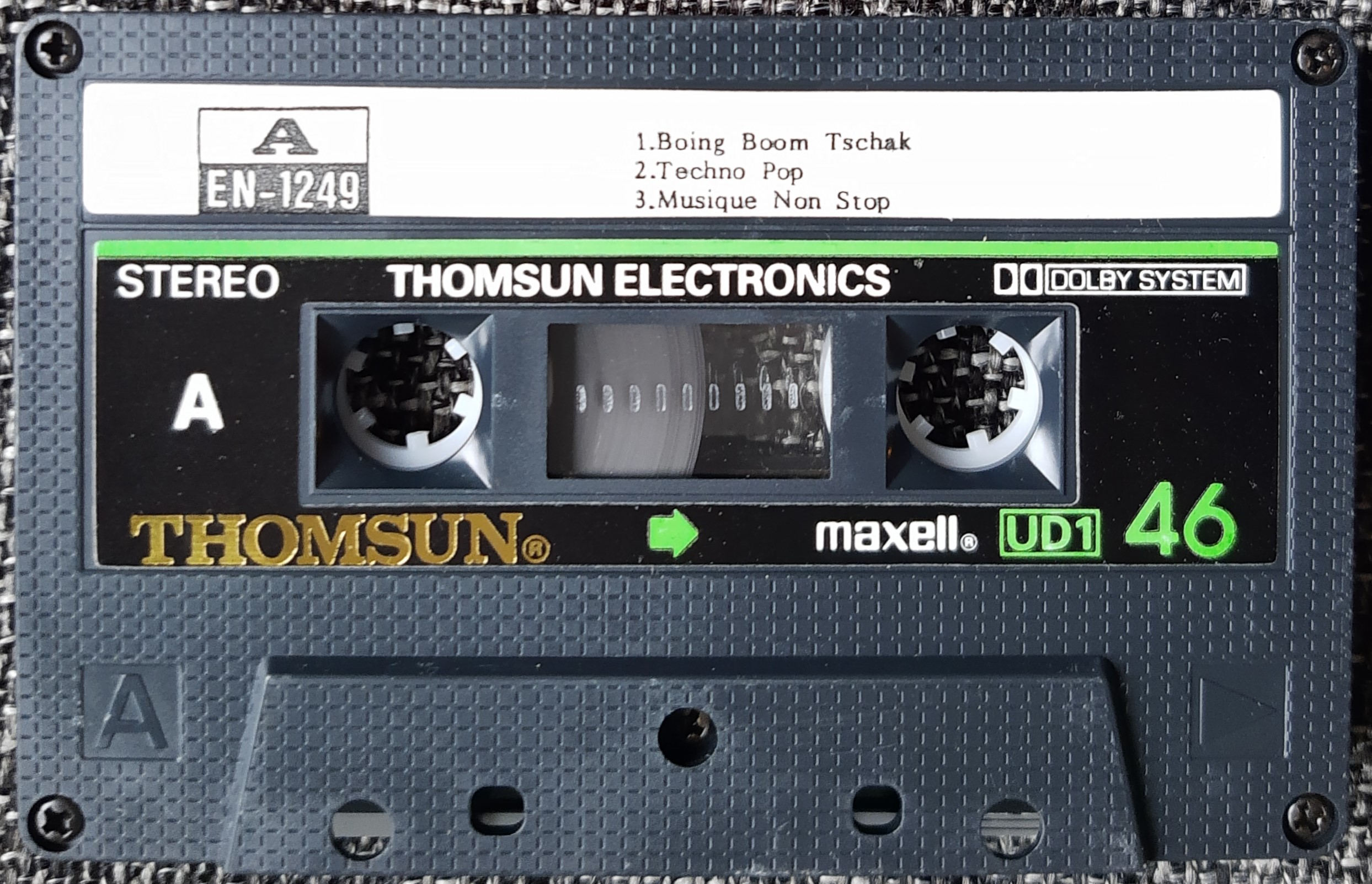 J-card is a simple 1-panel affair, printed on one side only. Thomsun used Maxell UD-I cassettes, this one is supposedly a C-46, so why there was not enough room for the whole 12" mix I don't know. A fine item none the less and a real 'oddity'!